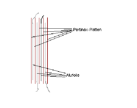 Wir haben uns unseren Kondensator selber gebaut. Dazu haben wir eine Pertinaxplatte genommen und mit einer Alufolie überzogen. Genaueres steht in dem Tag 3.01.2000. Unser Kondensator ist anders gebaut als der, er im Buch stand. Wir haben immer auf eine Platte eine Folie geklebt und nicht wie im Buch eine leere Pertinaxplatte immer dazwischen. Leider funktioniert es bei uns noch nicht richtig, aber es kann auch sein, dass es nicht am Kondensator liegt. Unser Kondensator hat 30nF. Der im Buch hatte nur 10nF. Dass wir soviel mehr haben, liegt daran, dass wir es eben anders gemacht haben.